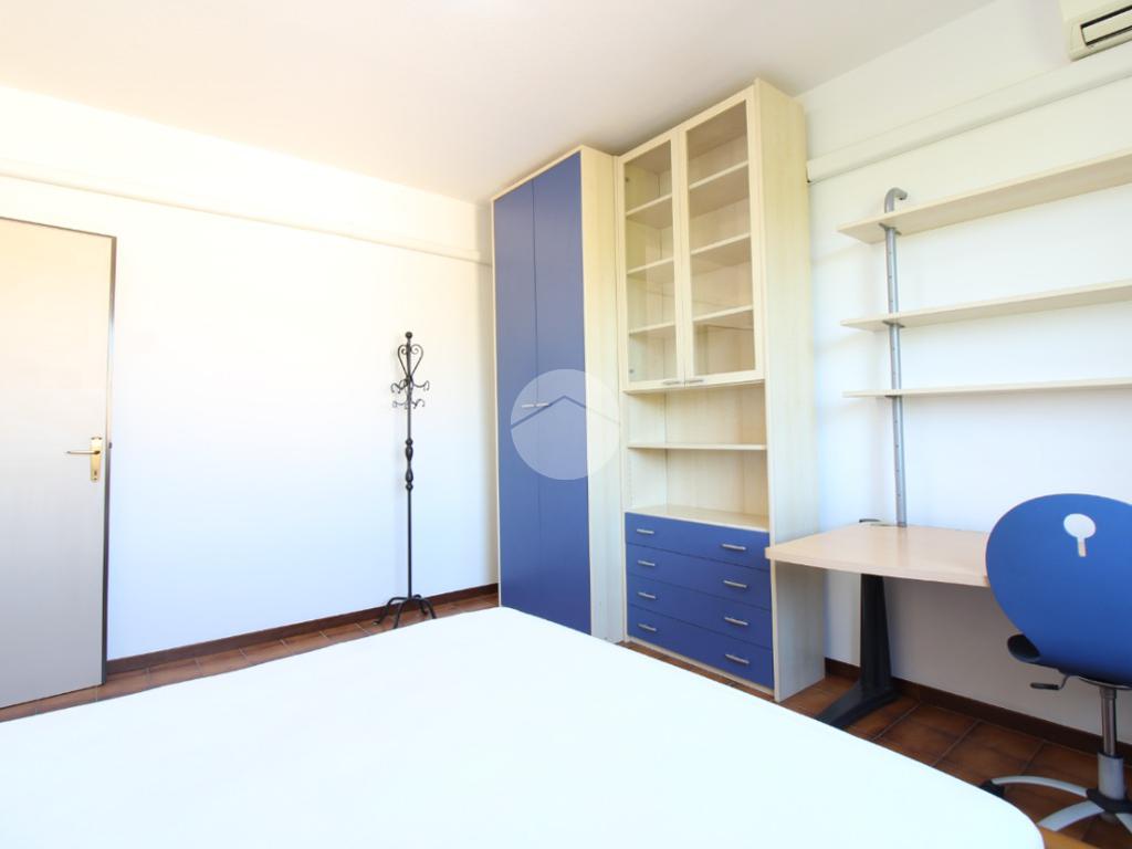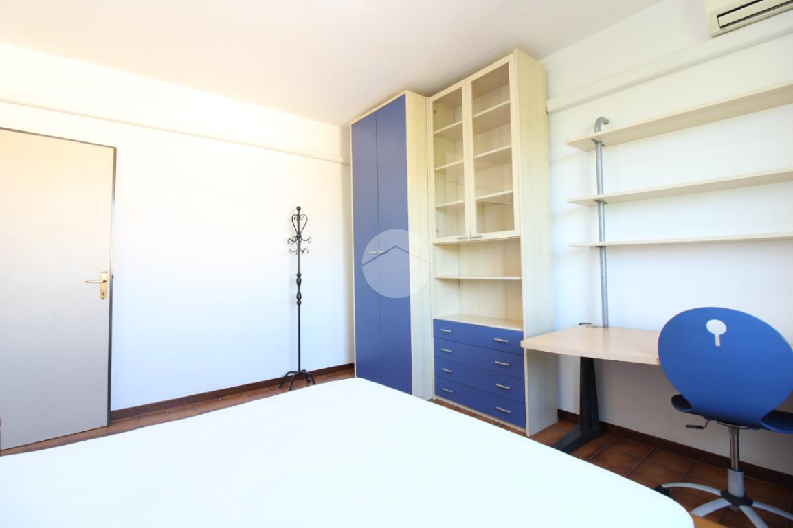 La camera è completamente arredata, dotata di aria condizionta e si trova all'interno di un ampio appartamento condiviso composto da ingresso, sala, cucina con balcone, due camere matrimoniali, una camera singola, ripostiglio e due bagni.