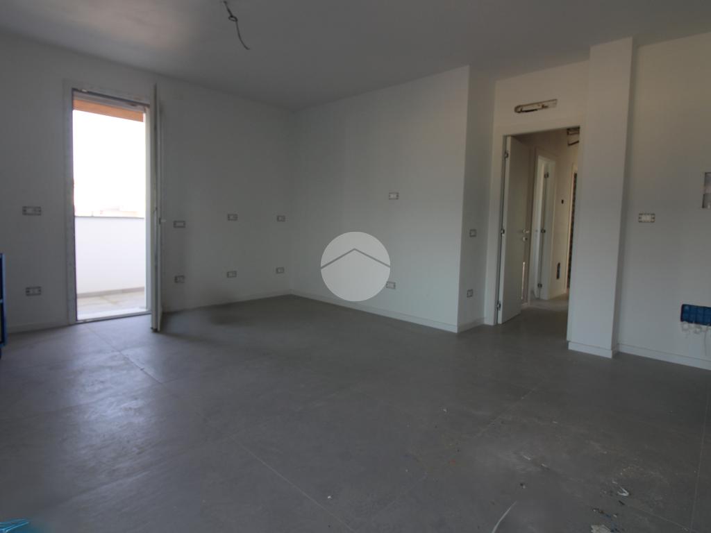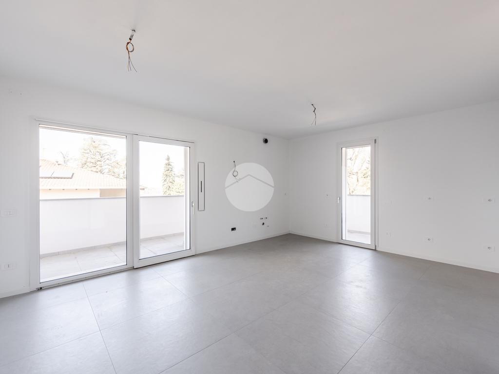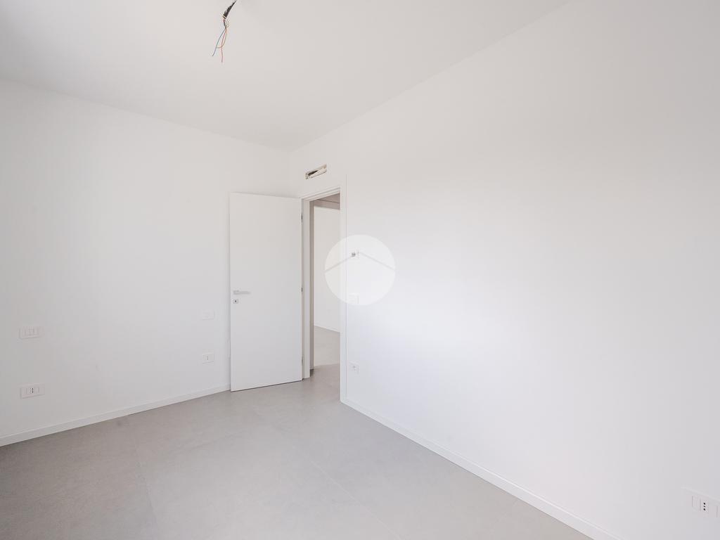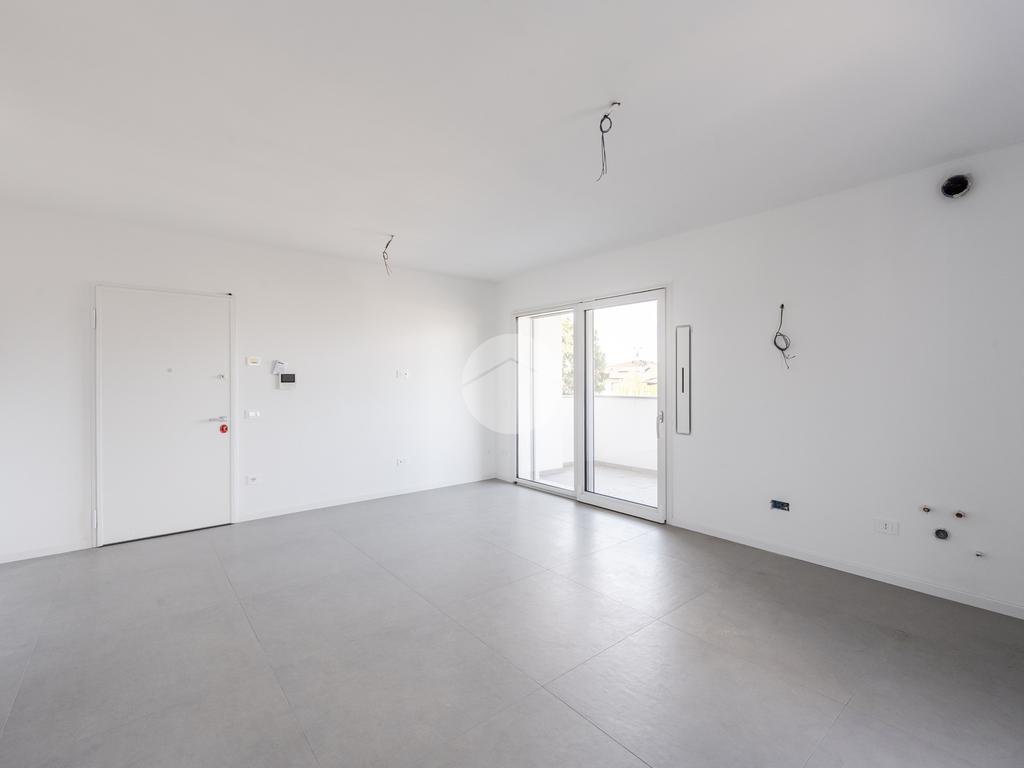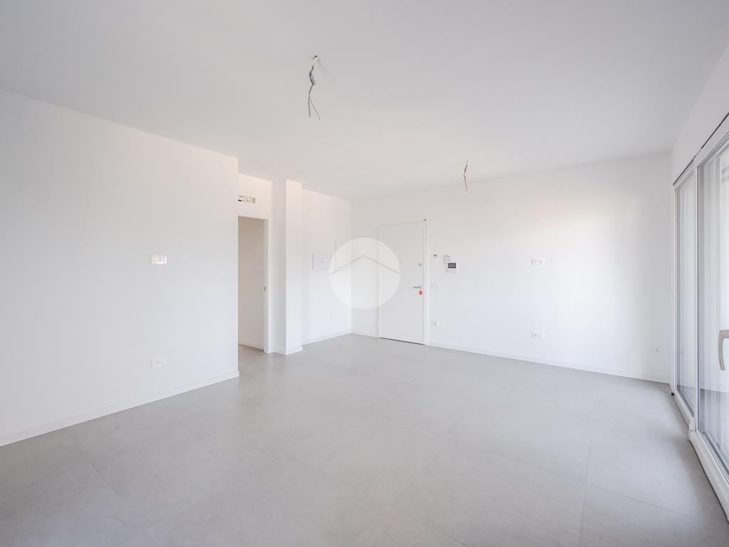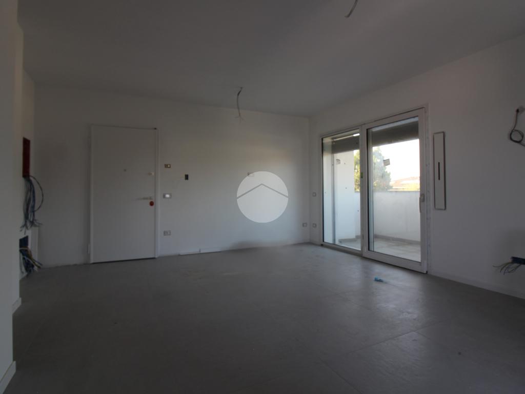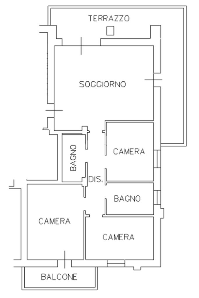 L'immobile, al secondo piano, sarà così composto: ingresso su soggiorno con cucina a vista, una camera matrimoniale, due camere singole, disimpegno zona notte, due bagni (uno finestrato ed uno cieco); completano la proprietà due balconi (uno di 19mq) ed una cantina.