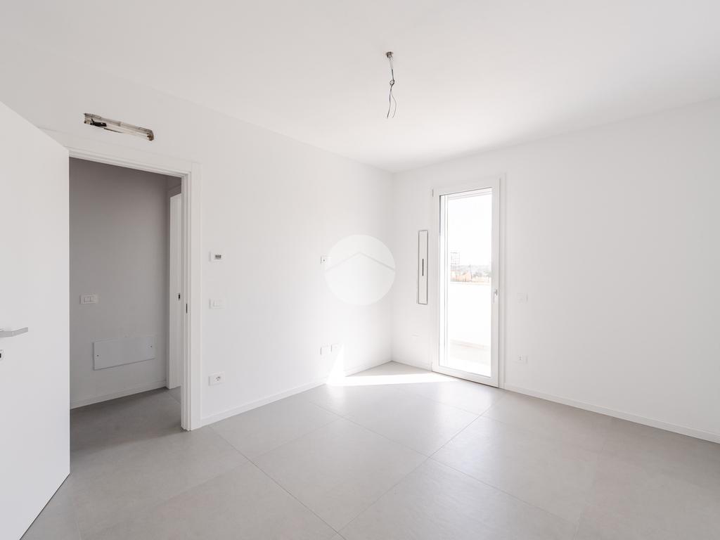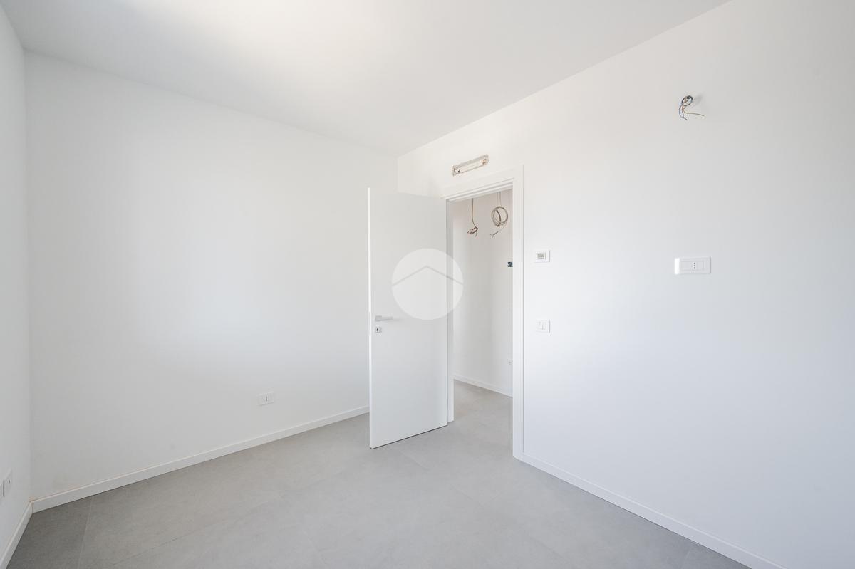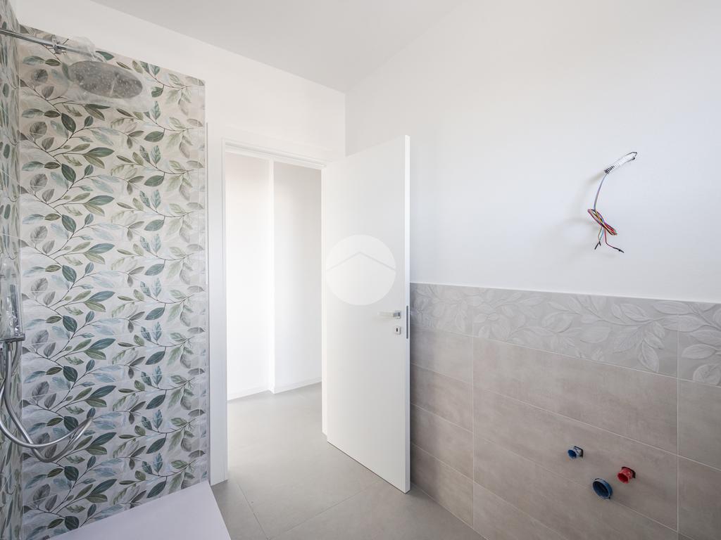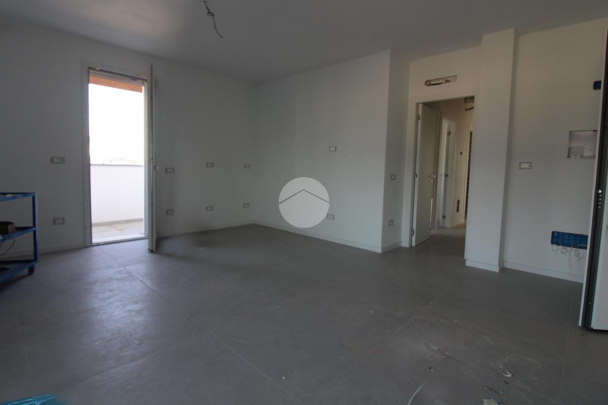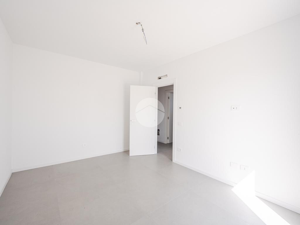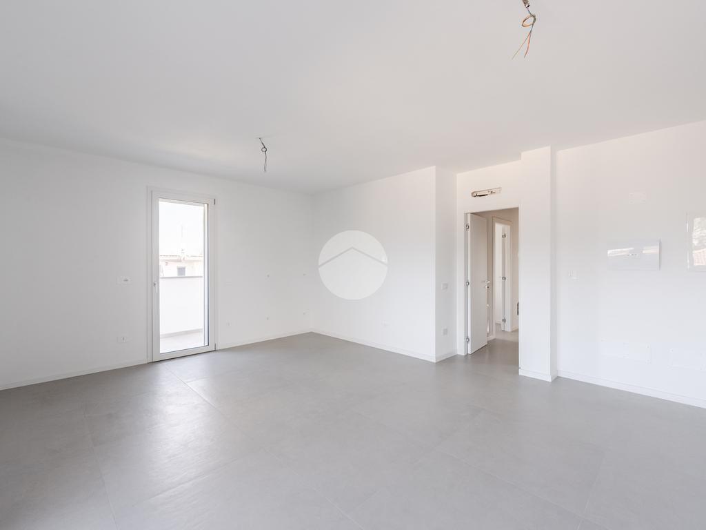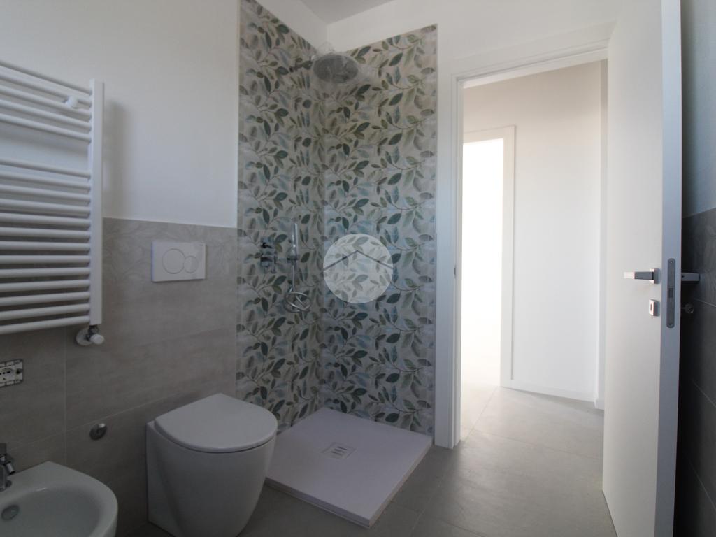 L'immobile, al secondo piano, sarà così composto: ingresso su soggiorno con cucina a vista, una camera matrimoniale, due camere singole, disimpegno zona notte, due bagni (uno finestrato ed uno cieco); completano la proprietà due balconi (uno di 19mq) ed una cantina.