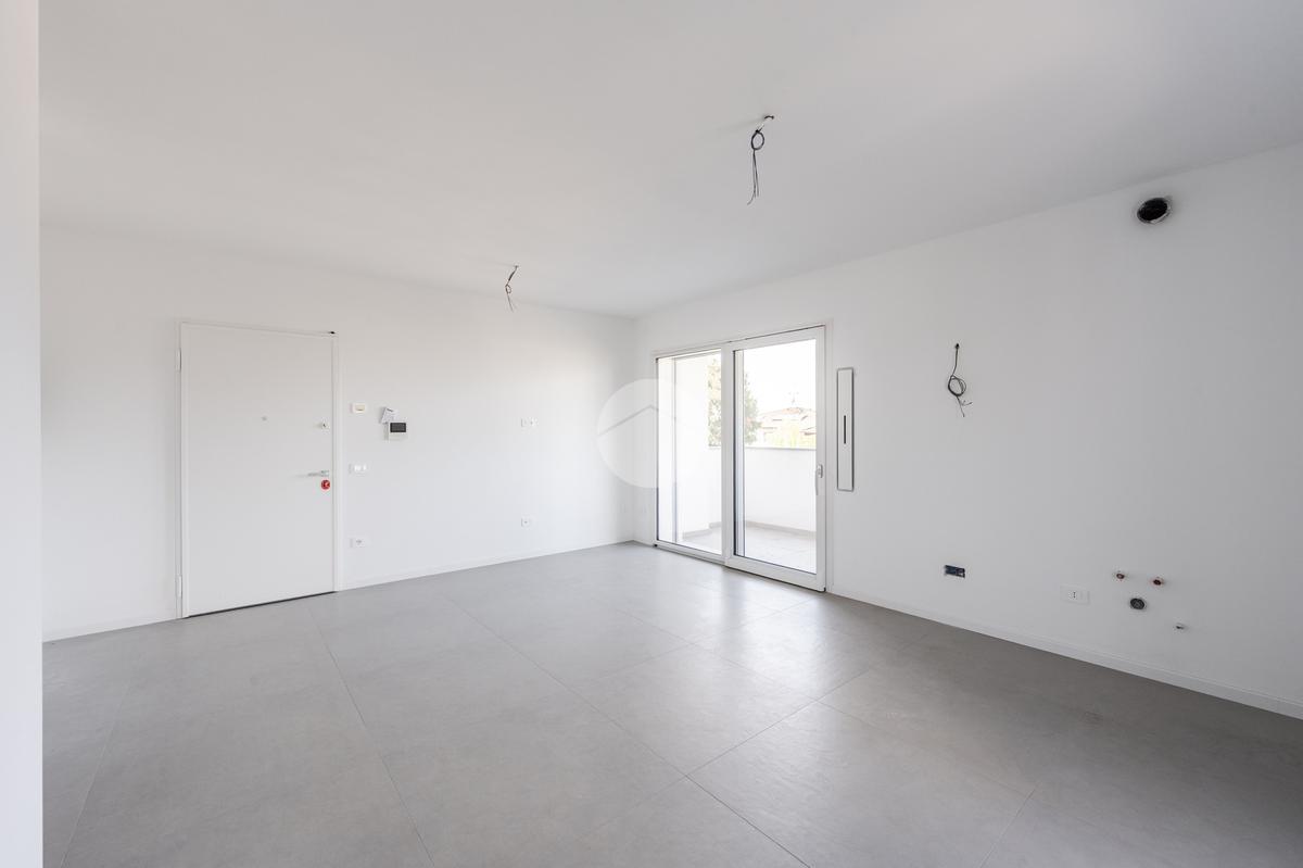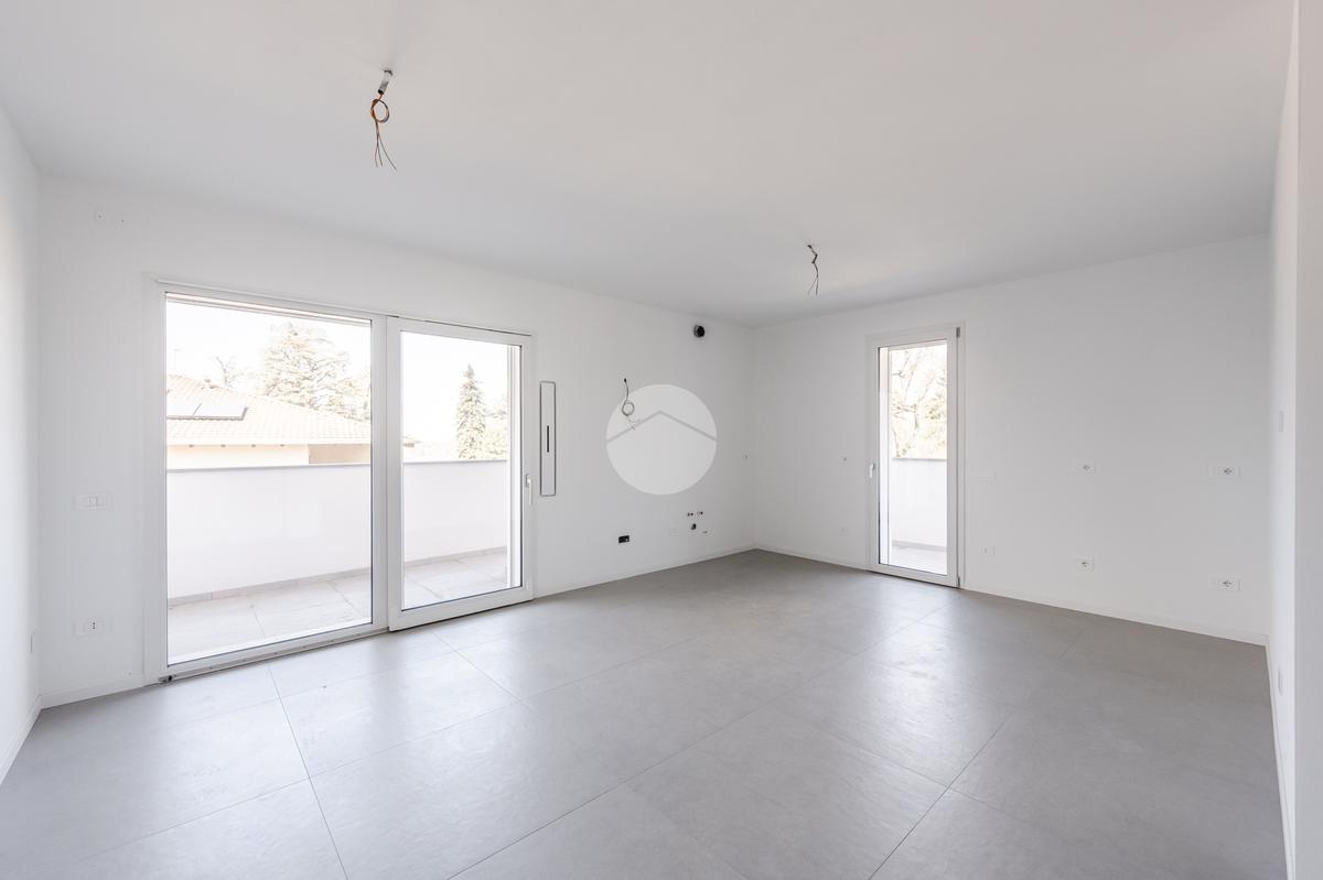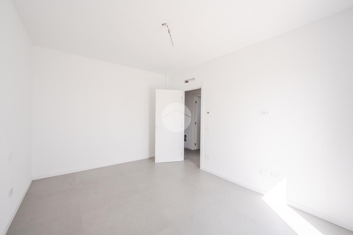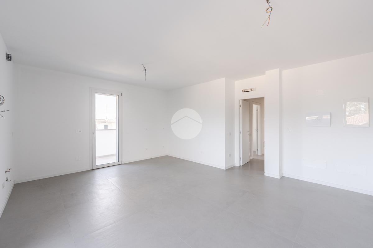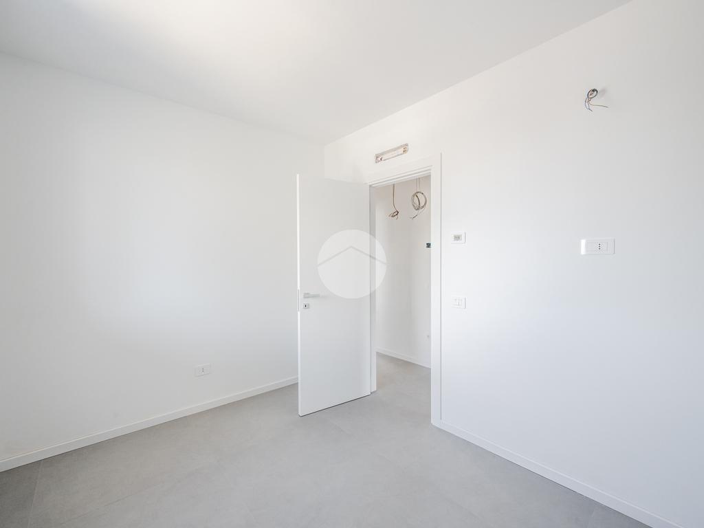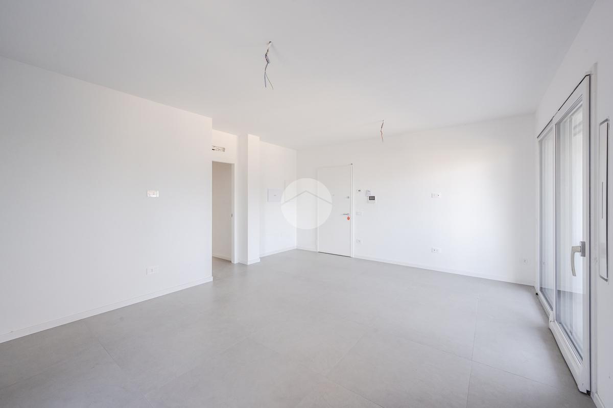 L'immobile, al secondo piano, sarà così composto: ingresso su soggiorno con cucina a vista, una camera matrimoniale, due camere singole, disimpegno zona notte, due bagni (uno finestrato ed uno cieco); completano la proprietà due balconi (uno di 19mq) ed una cantina.