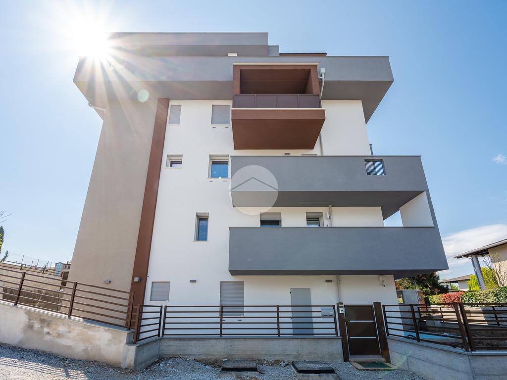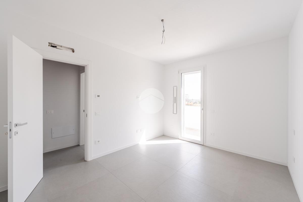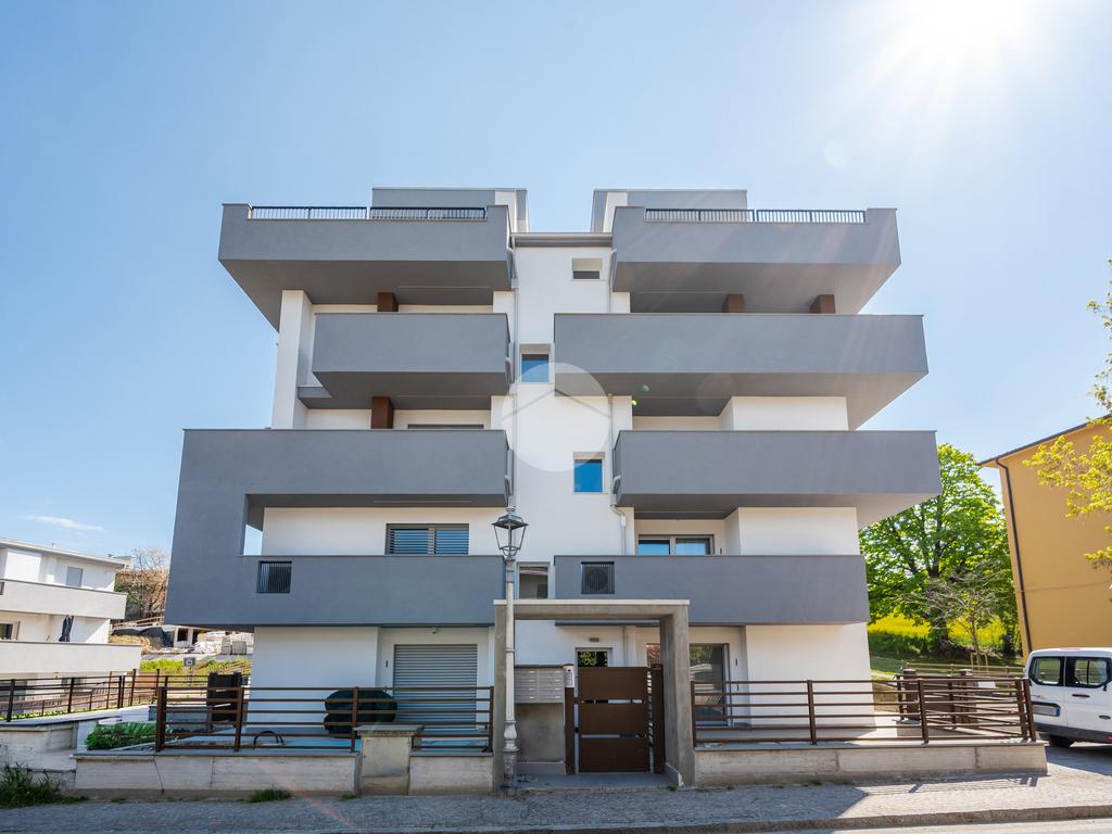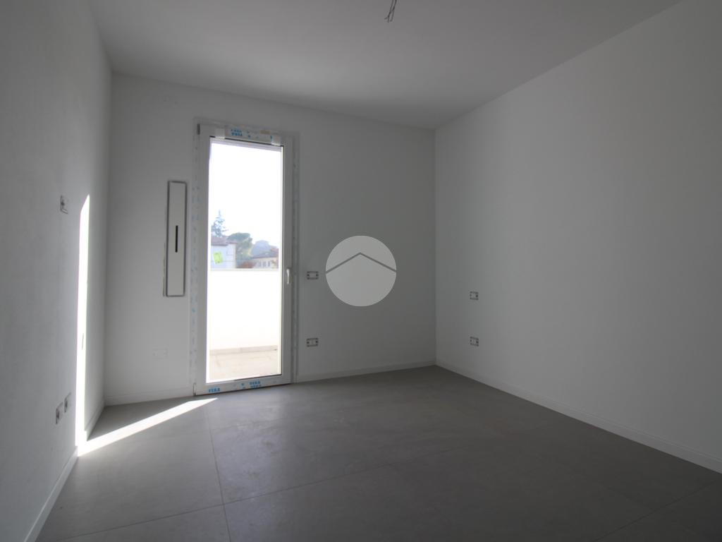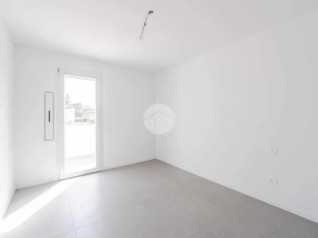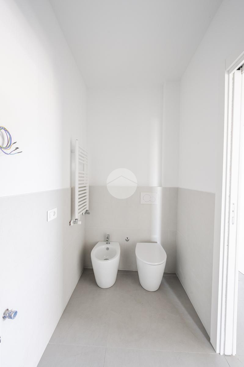 L'immobile, al secondo piano, sarà così composto: ingresso su soggiorno con cucina a vista, una camera matrimoniale, due camere singole, disimpegno zona notte, due bagni (uno finestrato ed uno cieco); completano la proprietà due balconi (uno di 19mq) ed una cantina.