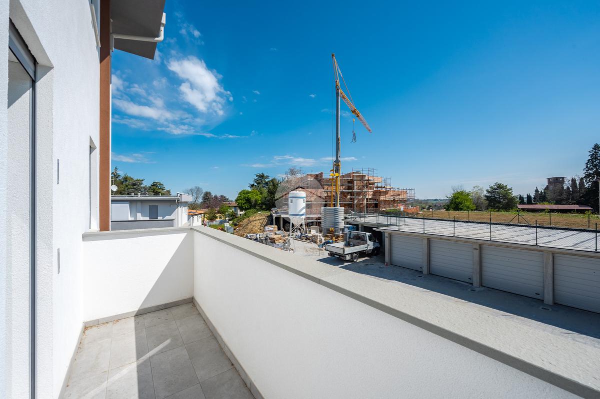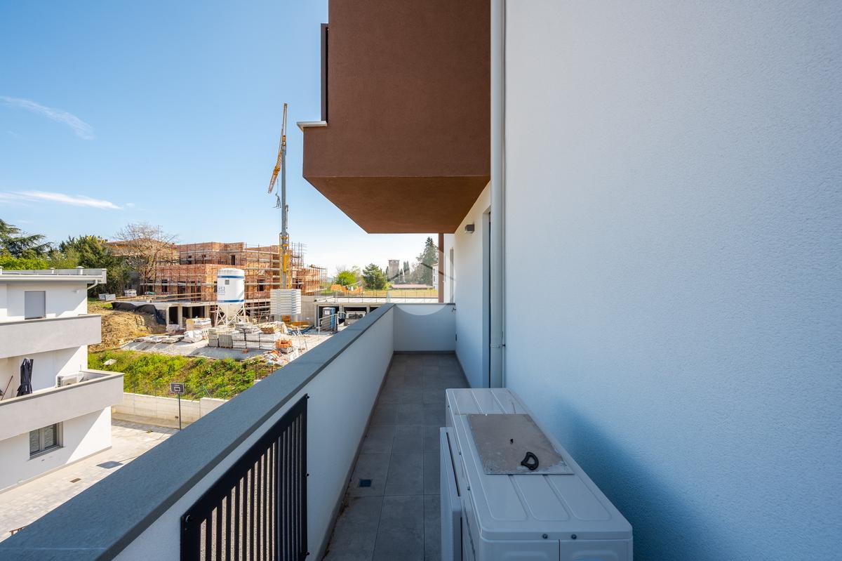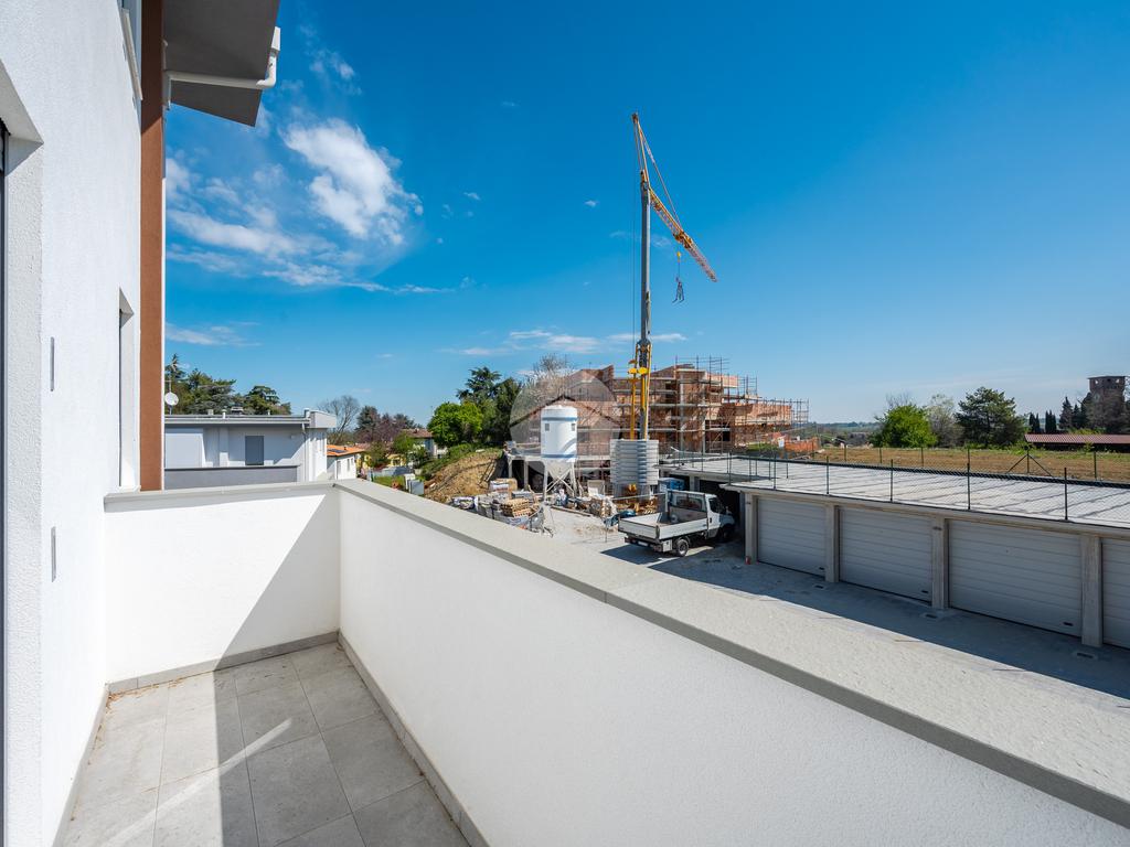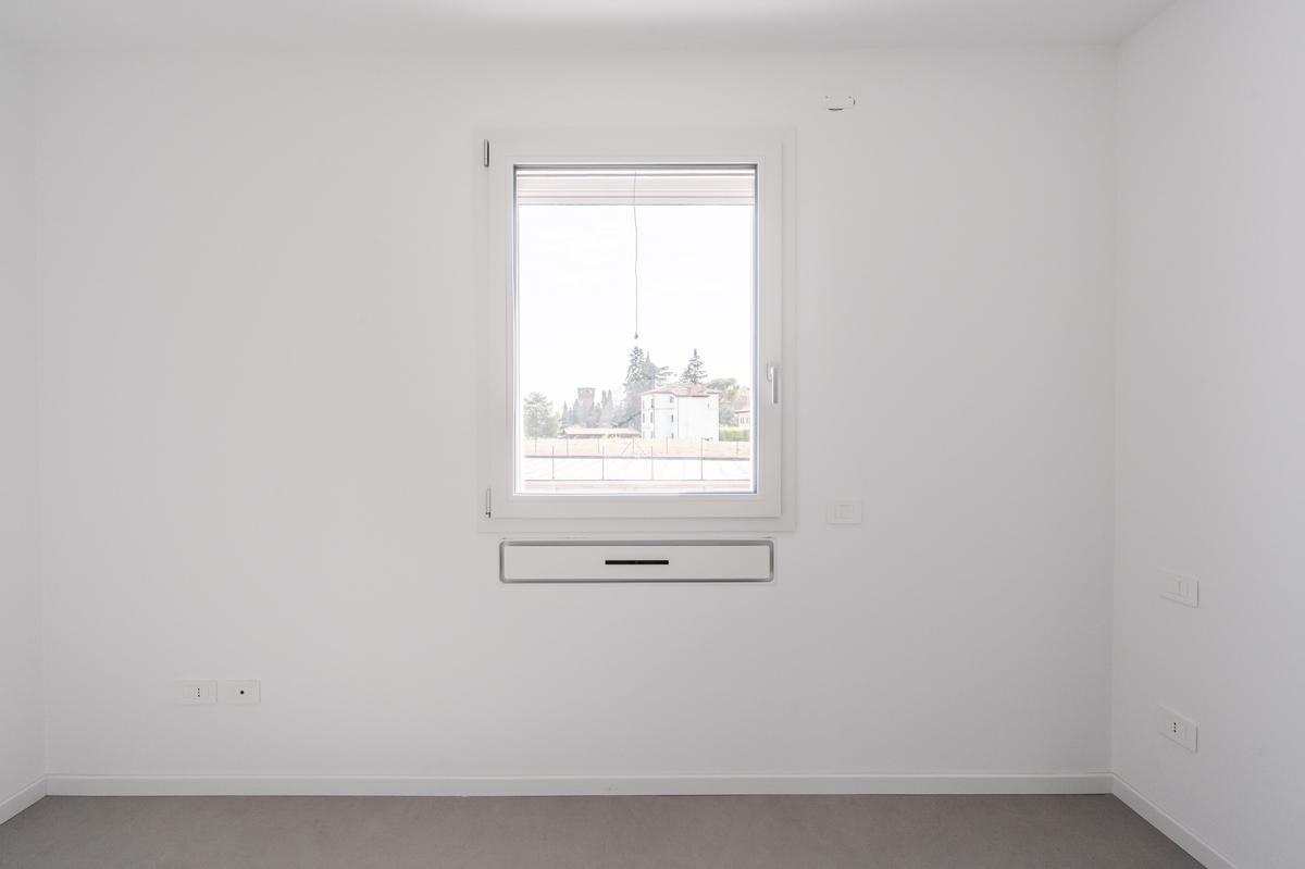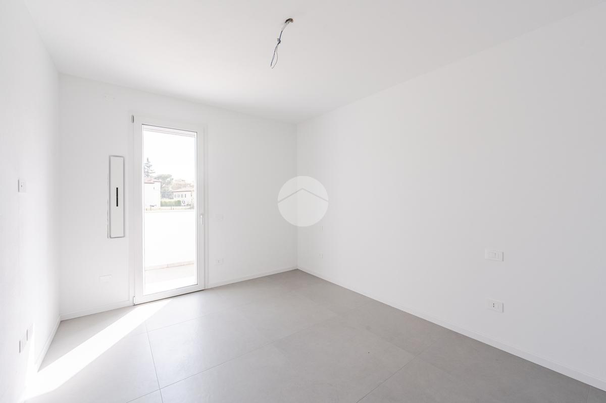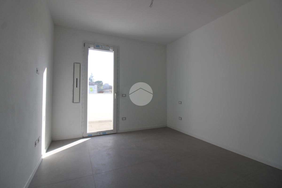 L'immobile, al secondo piano, sarà così composto: ingresso su soggiorno con cucina a vista, una camera matrimoniale, due camere singole, disimpegno zona notte, due bagni (uno finestrato ed uno cieco); completano la proprietà due balconi (uno di 19mq) ed una cantina.