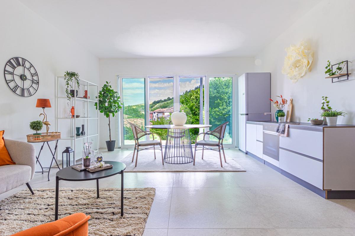 Soluzione ottimizzata secondo le più recenti normative edilizie in merito all'antisismica, riscaldamento in pompa di calore senza allaccio alla rete metano, infissi con triplo vetro, impianoto fotovoltaico.