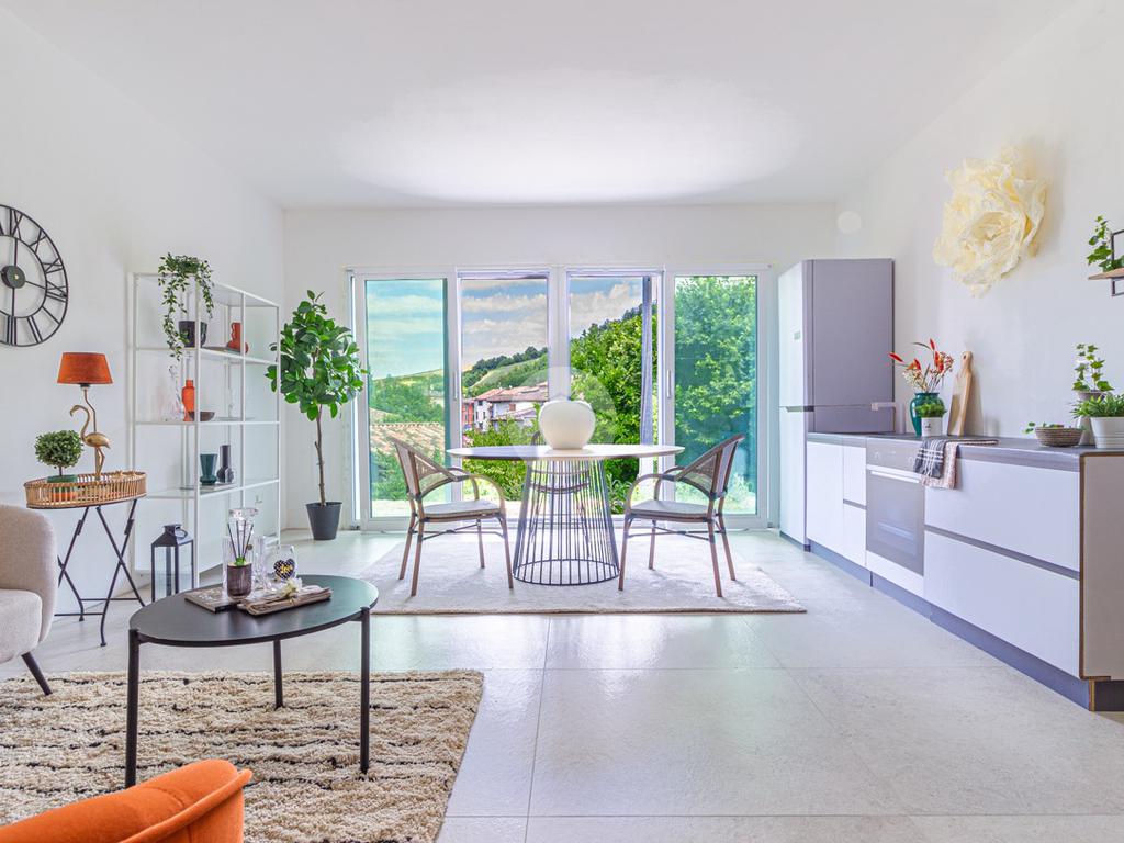 Soluzione ottimizzata secondo le più recenti normative edilizie in merito all'antisismica, riscaldamento in pompa di calore senza allaccio alla rete metano, infissi con triplo vetro, impianoto fotovoltaico.